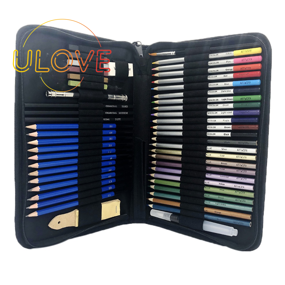 Art Pencil 51pcs Set Colored Pencils Sketch Kit Art Drawing Coloring Shopee Indonesia