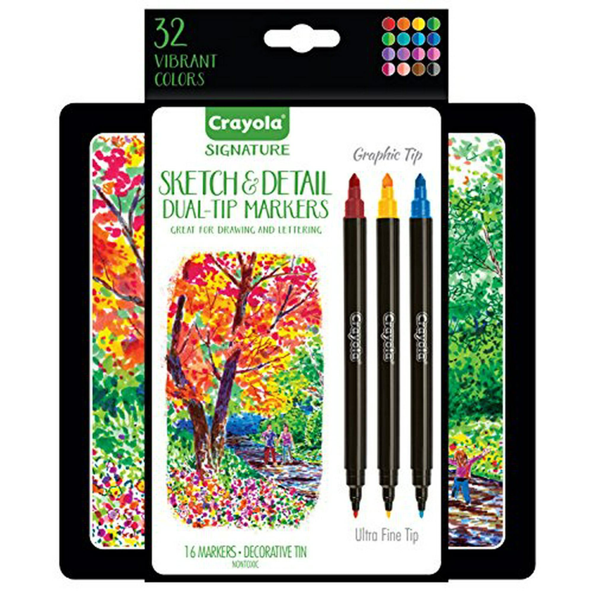 Crayola Signature Sketch Detail Dual Tip Markers Professional Coloring Kit Crayoligraphy Calligraphy 16ct Design Craft Craft Supplies Tools On Carousell